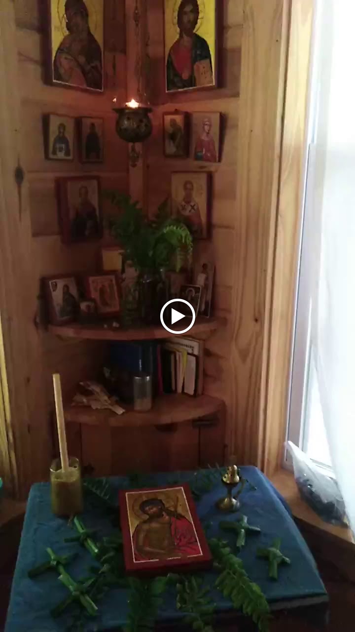 Palm Sunday Liturgy, with a lucky find of a Lazarus Saturday paper icon and last year's crosses |